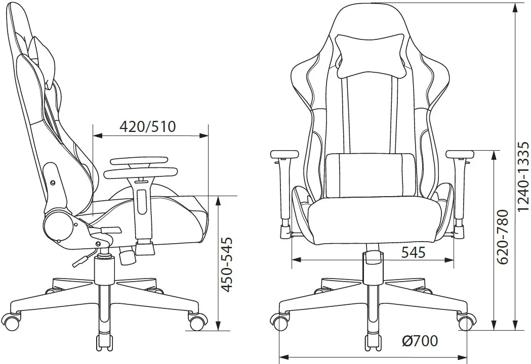 Ширина сиденья545
