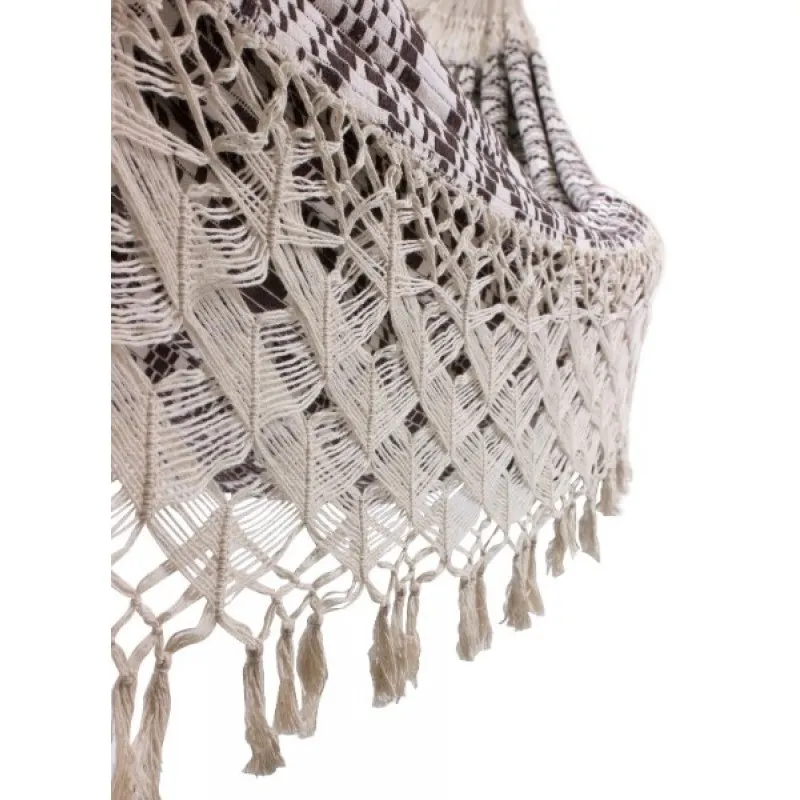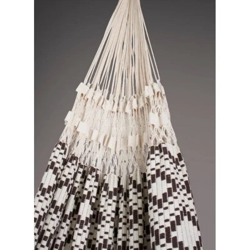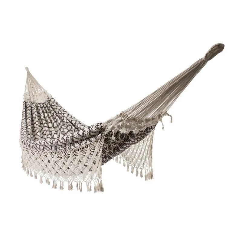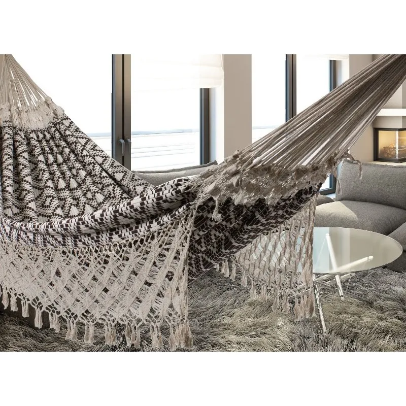 LAND является высококачественным трехместным гамаком из чистого органического хлопка. Традиционное ручное плетение , качество и исключительный комфорт в одном лице . Благодаря гибкой технике переплетения , ткань в этом гамаке повторяет контуры Вашего тела , обеспечивая вас с неповторимым комфортом . Умело сделанные декоративные полосы и макраме между тканью и многими подвесными канатами не только типичные для гамаков из Бразилии , они также создают очень равномерное распределение веса.