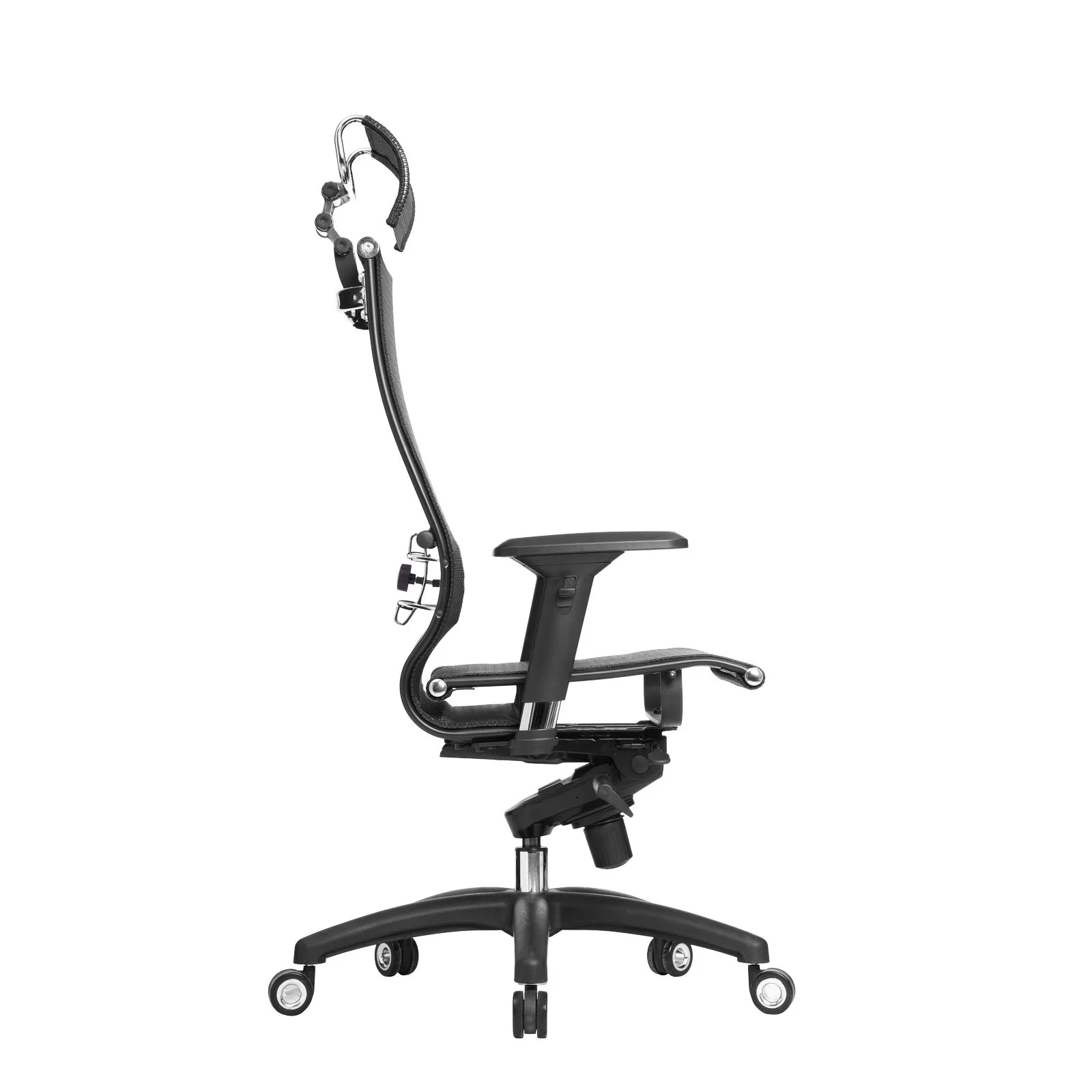 Подголовник: Съемный 3D подголовник из перфорированного износостойкого материала NewLeather*, обеспечивает идеальную поддержку головы в любом положении. Регулируется по высоте, глубине, углу наклона.Каркас подголовника: стальной, покрытый зеркальным хромом;
