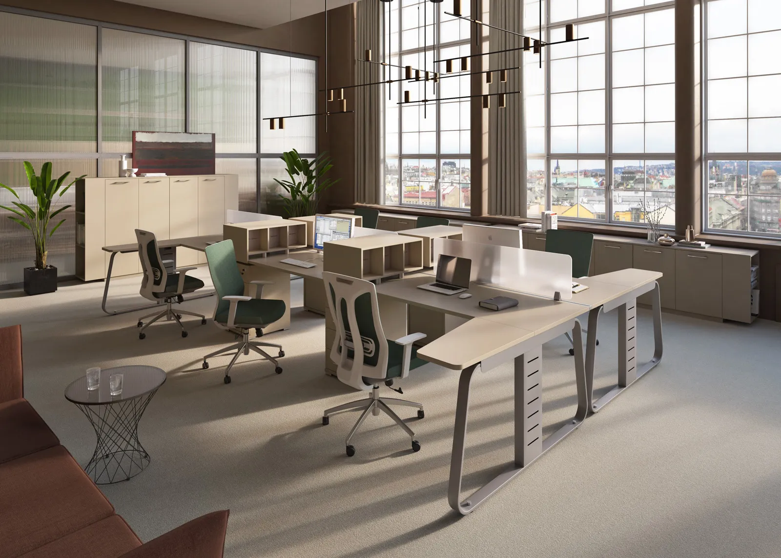 - Дорогие материалы, многообразие композиций и бесконечное число компоновок – все это воплощение креативного и динамичного проекта, стимулирующего к продуктивной работе. Серия включает в себя различные столы и бенч-системы, которые предоставляют возможность грамотно организовать рабочее пространство.