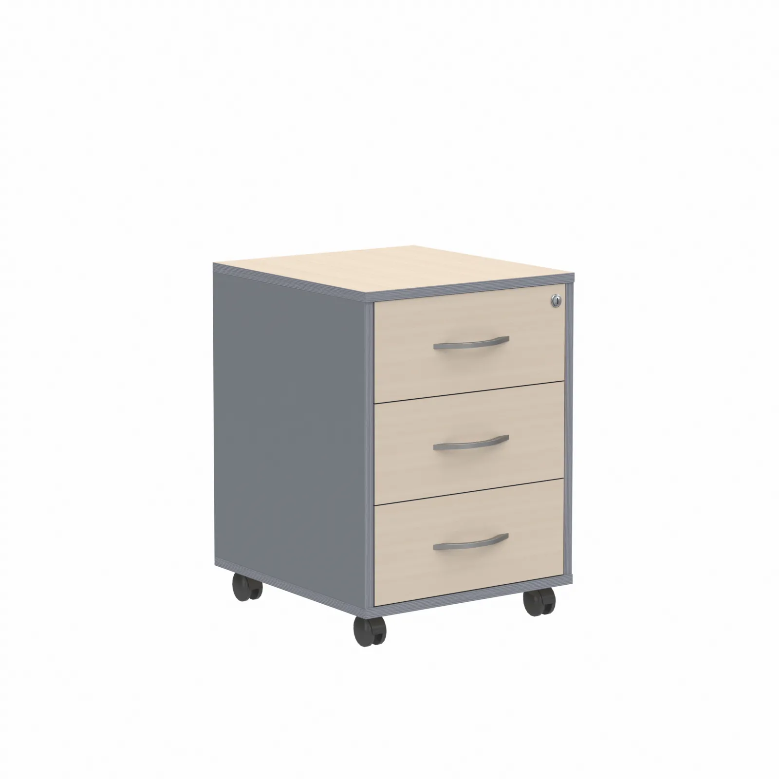 Универсальная мобильная тумба IMAGO для офисного или домашнего использования. Размеры - 412х556х450 мм, цвет - Клен/Металлик. Удобные колесики с плавным ходом, надежная защита торцевых поверхностей - кромка ПВХ 2 мм. Количество ящиков - 3. Верхний ящик тумбы оснащен замком.