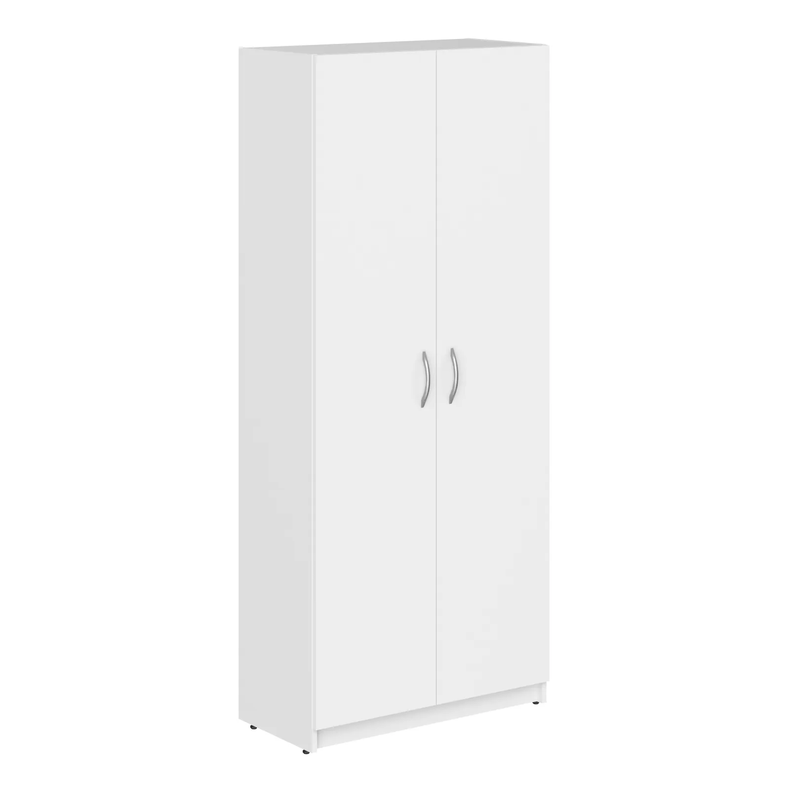 Широкий и высокий гардероб SIMPLE для офисного или домашнего использования. Размеры - 770х1815х375 мм, цвет - Белый. Двустворчатый гардероб, закрывающийся на дверцы из ЛДСП. Надежная защита торцевых поверхностей - кромка ПВХ. Шкаф оснащен регулируемыми опорами для компенсации неровностей пола.