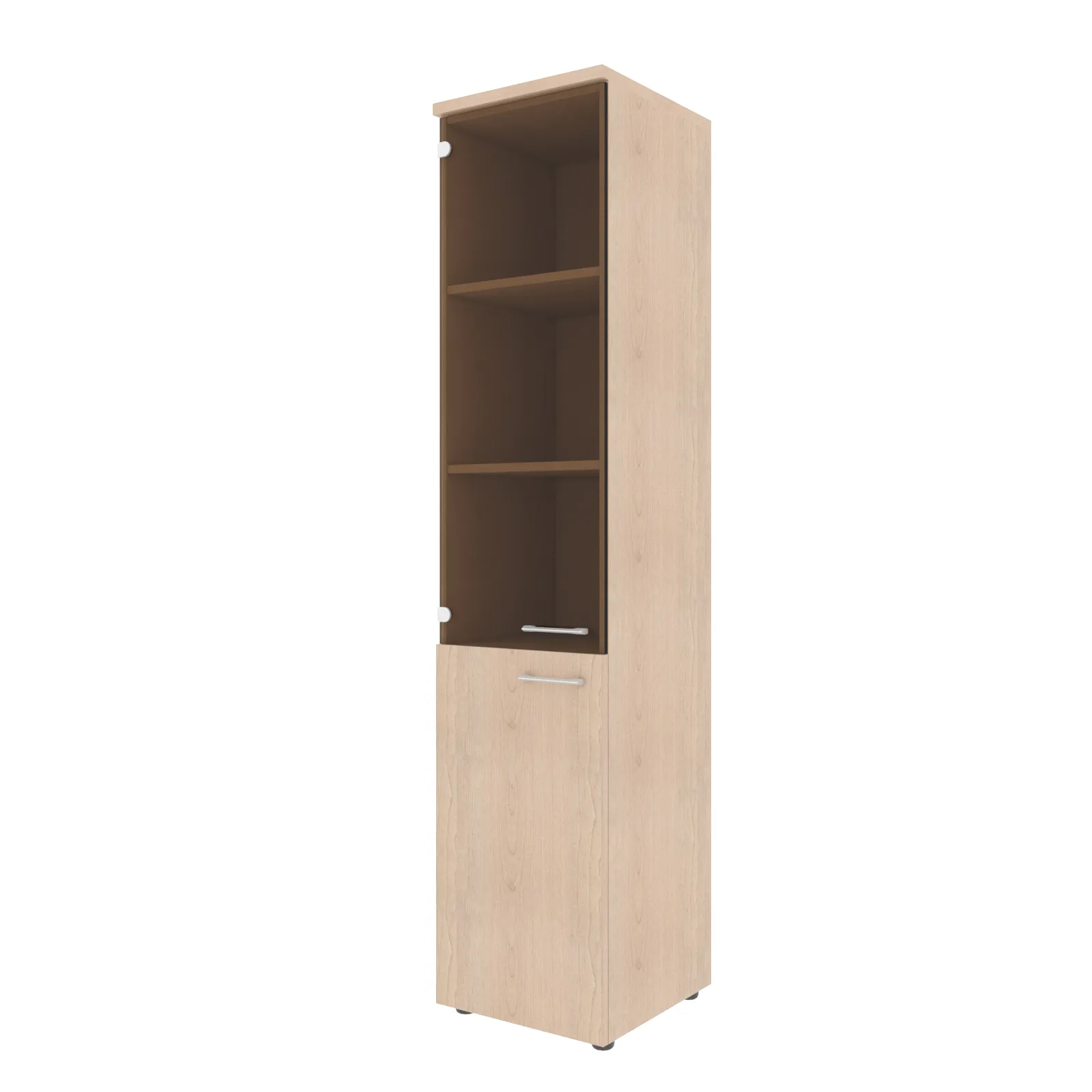 Универсальный шкаф комбинированный XTEN для офисного или домашнего использования. Размеры - 432х1955х432 мм, тип - левосторонний, цвет - Бук Тиара. Шкаф имеет солидный топ – 25 мм. Оснащен 5 полками, две нижние полки закрыты дверцей из ЛДСП, три верхние - стекляной дверцей. На всех дверцах имеются долговечные и стильные металлические ручки. Конструкция шкафа оснащена прочными силовыми креплениями – эксцентриковыми стяжками. Регулируемые по высоте опоры обеспечат шкафу устойчивость на неровном полу.