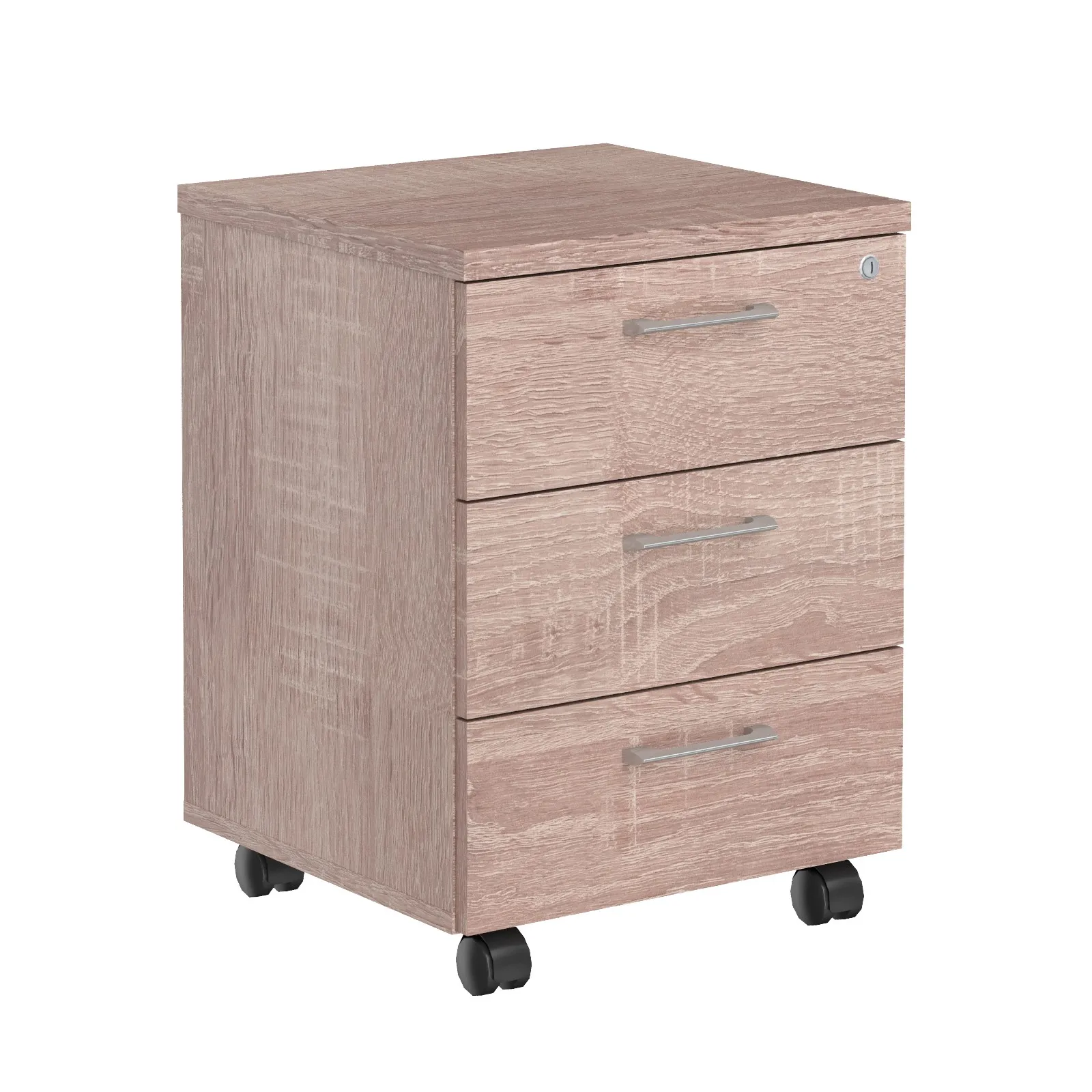Универсальная мобильная тумба XTEN для офисного или домашнего использования. Размеры - 465х634х450 мм, цвет - Дуб Сонома. Тумба имеет солидный верхний топ 25 мм и надежную конструкцию с задней стенкой из ЛДСП 18мм. Удобные колесики с плавным ходом, надежная защита торцевых поверхностей - кромка ПВХ 2 мм. Количество ящиков - 3. Тумба оснащена центральным замком, позволяющим закрывать все ящики одним поворотом ключа. Конструкция тумбы оснащена прочными силовыми креплениями – эксцентриковыми стяжками.