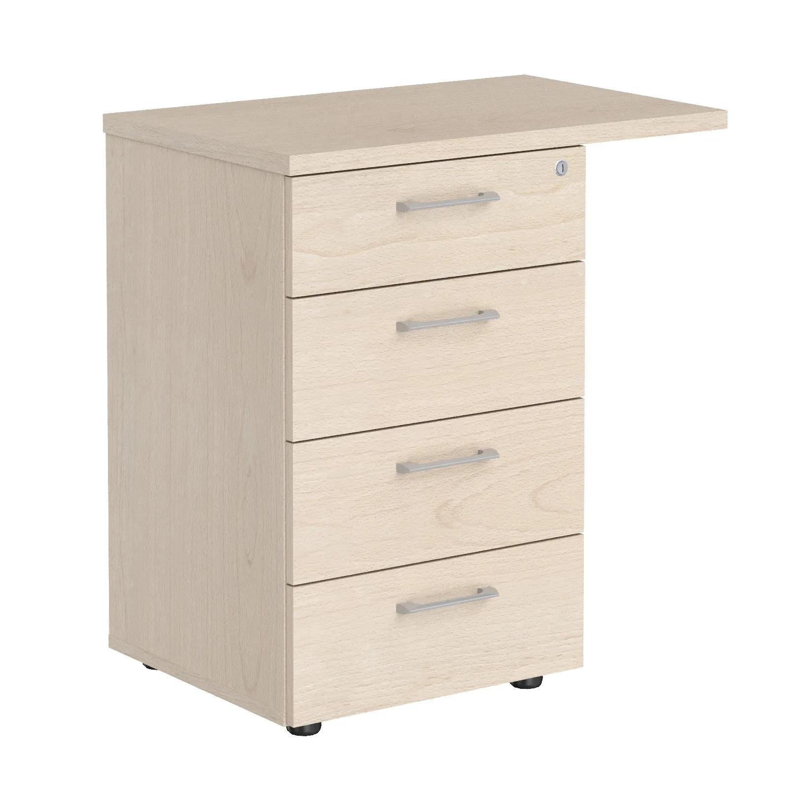Универсальная приставная тумба XTEN для офисного или домашнего использования. Размеры - 700х750х450 мм, цвет - Бук Тиара. Тумба оснащена солидным и увеличенным верхним топом - 25 мм, для более удобного присоединения к столу. Надежная защита торцевых поверхностей - кромка ПВХ 2 мм. Количество ящиков – 4, с долговечными и стильными металлическими ручками. Тумба оснащена центральным замком, позволяющим закрывать все ящики одним поворотом ключа. Конструкция тумбы оснащена прочными силовыми креплениями – эксцентриковыми стяжками. Регулируемые по высоте опоры обеспечат тумбе устойчивость на неровном полу.