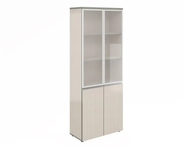 Шкаф широкий высокий со стеклом в алюм. раме