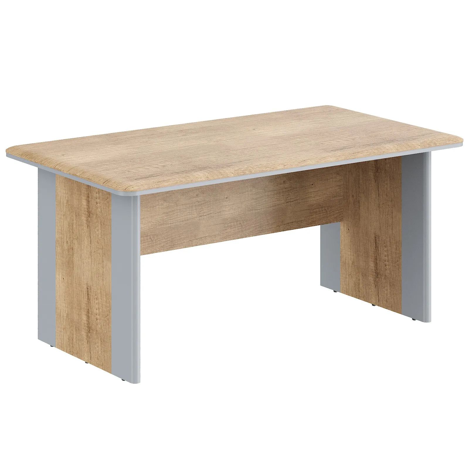 Универсальный рабочий стол для руководителя DIONI для офисного или домашнего использования, размер – 1600х900х750 мм, основной цвет - Дуб Каньон, дополнительный цвет - Серый. Стол оснащен фронтальной панелью и двухслойной солидной столешницей общей толщиной 38 мм (МДФ 22 мм и ЛДСП 16 мм) с плавными фрезерованными краями. Благодаря отсутствию острых углов работать за столом комфортно и безопасно. Прочные и долговечные составные опоры 38 мм выполнены в оригинальном дизайне с контрастными боковыми частями. Надежная защита всех элементов из ЛДСП – кромка ПВХ. Конструкция стола оснащена прочными силовыми креплениями – эксцентриковыми стяжками. Регулируемые по высоте опоры обеспечат столу устойчивость на неровном полу.