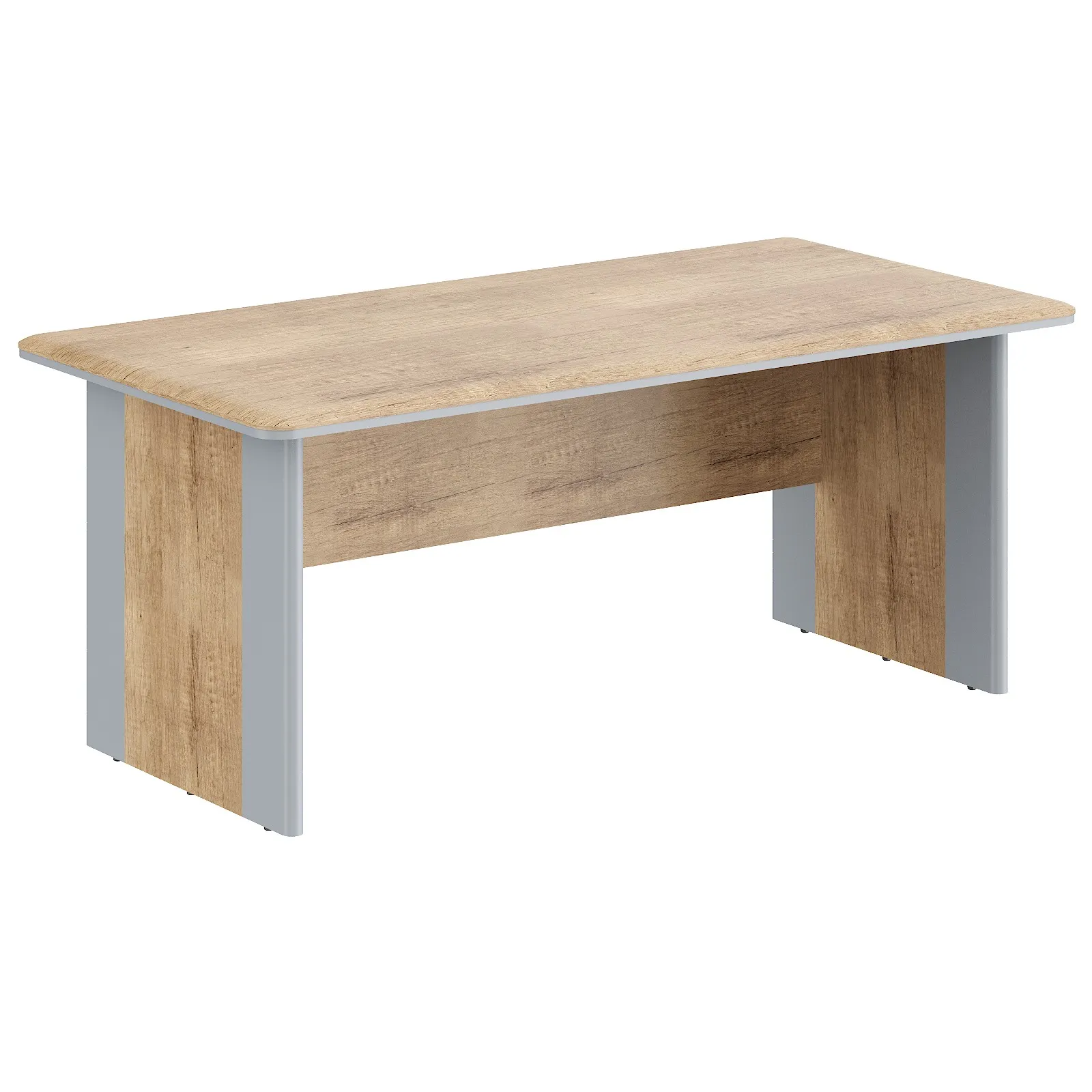 Большой рабочий стол для руководителя DIONI для офисного или домашнего использования, размер – 1800х900х750 мм, основной цвет - Дуб Каньон, дополнительный цвет - Серый. Стол оснащен фронтальной панелью и двухслойной солидной столешницей общей толщиной 38 мм (МДФ 22 мм и ЛДСП 16 мм)м с плавными фрезерованными краями. Благодаря отсутствию острых углов работать за столом комфортно и безопасно. Прочные и долговечные составные опоры 38 мм выполнены в оригинальном дизайне с контрастными боковыми частями. Надежная защита всех элементов из ЛДСП – кромка ПВХ. Конструкция стола оснащена прочными силовыми креплениями – эксцентриковыми стяжками. Регулируемые по высоте опоры обеспечат столу устойчивость на неровном полу.