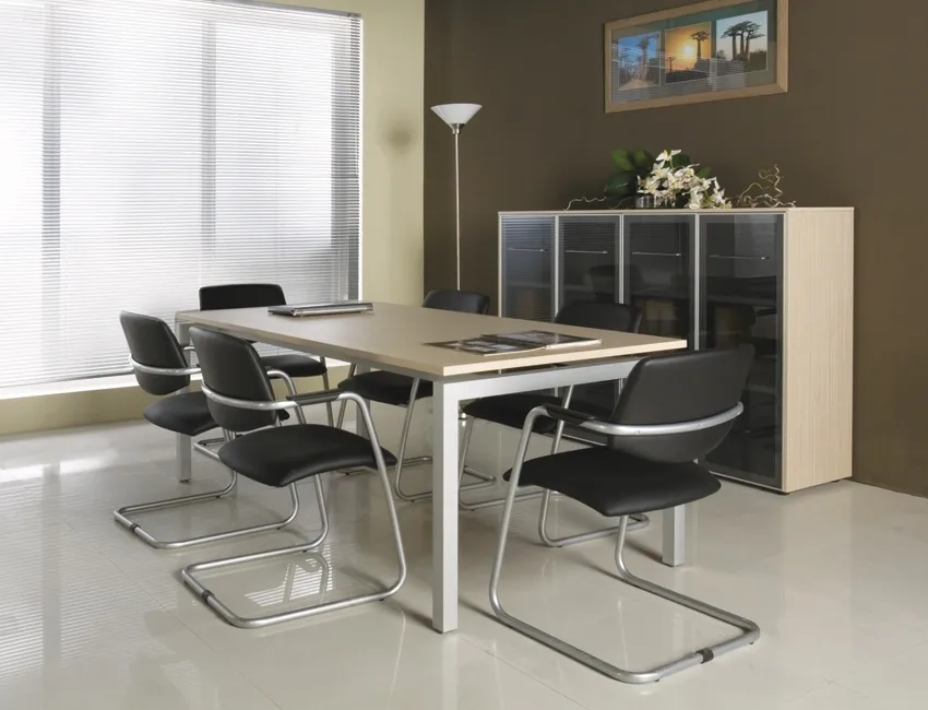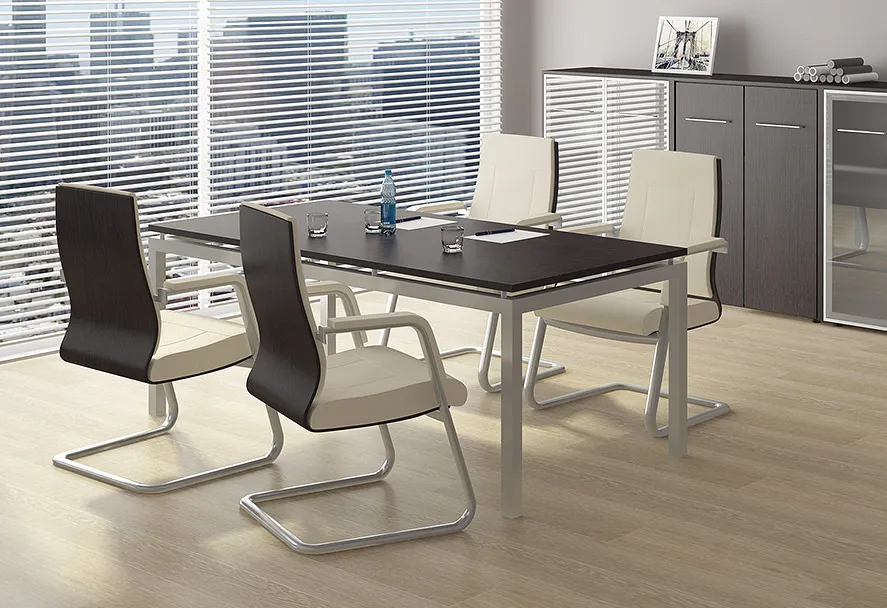 • В составе кабинета присутствует модульная линейка переговорных столов на опорах-колоннах из нержавеющей стали