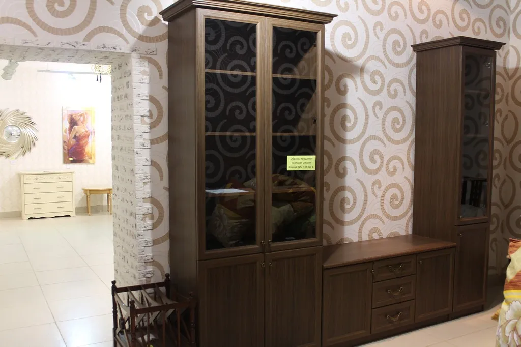 МДФ. Фото не отражает фактуру покрытия. Выглядит дорого. Осталась тумба.