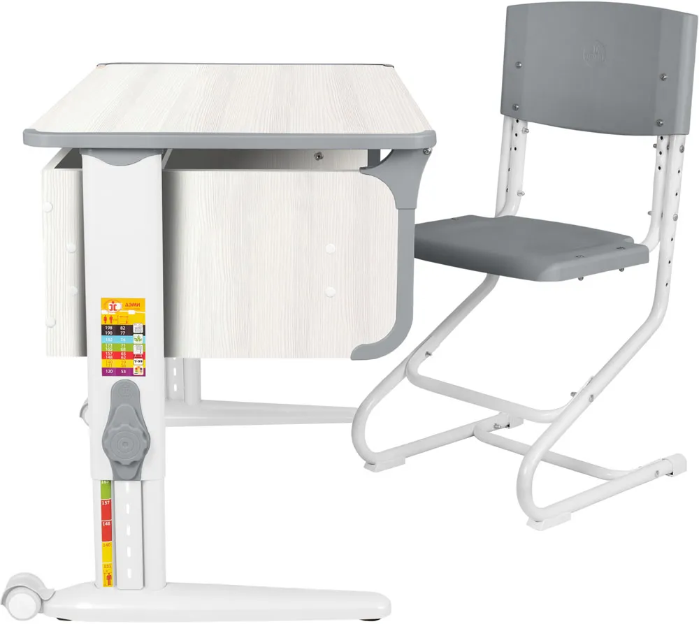 Столешница легко регулируется по наклону от 0о до 30о, подбирается оптимальное положение для любых занятий. Высота стола настраивается по высоте, помогая ребёнку сохранять правильную посадку, защищая его от сколиоза и остеохондроза.