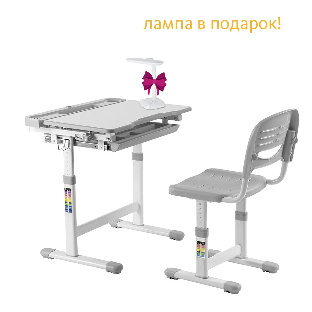 Цвета: серый,розовый,голубойНазначение: Наклоняемый учебный стол Модель: Учебный стол для одного ребенка Материал: Прессованное дерево (МДФ), сталь, полимер. Толщина: 15 мм Доступный цвет: Голубой/Розовый/Серый Габариты стола (ШхГхВ): 664х493х540-766 мм Размер стула (ШхГхВ): 386x380x673-793 мм Размер стола (ШхГхВ): 664x493х15 мм Размер наклоняемого стола (ШхГхВ): 664x365х15 мм Размер фиксированной части стола (ШхГхВ): 664х128х26 мм Хранение: Выдвижные ящики Уровень регулировки высоты: 540-766 мм Механизм регулировки высоты стола: Ручной Уровень регулировки высоты стула: 320-440 мм Механизм регулировки высоты стола: Ручной Основание стола: Регулируемое Угол наклона стола: От 0 До 40° Механизм угла наклона: Роликовый фиксатор