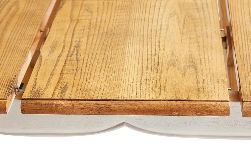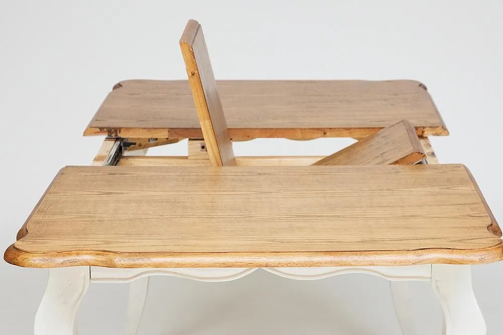 Цвет Белый. Материал Береза Дерево.Материал столешницы-Массив.Страна производства-Малайзия.СтильКлассический, Современный.Раскладка-Раздвижные.