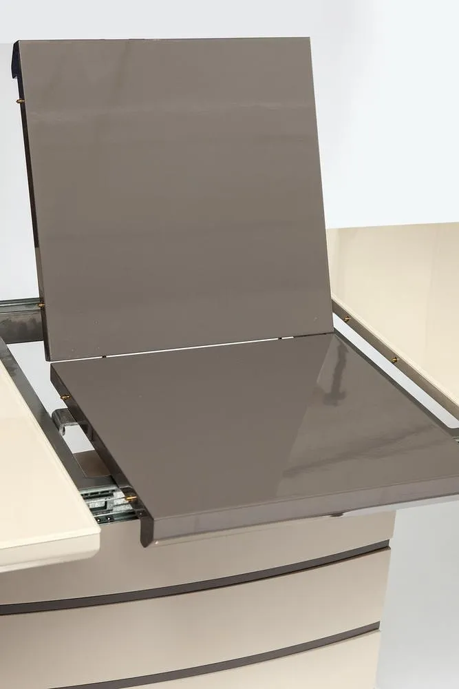 Стол WOLF ( mod. 8053-2 ) мдф high gloss, закаленное стекло слоновая кость/латте