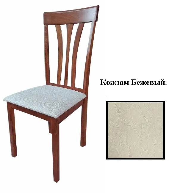 Стул с мягким сиденьем дерево гевея, Дуб, кож.зам. беж